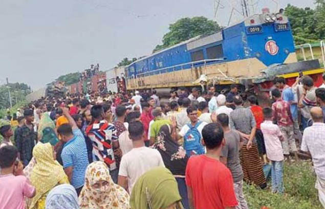 ভৈরবে যাত্রীবাহী ও মালবাহী দুটি ট্রেনের সংঘর্ষের ঘটনায় ঢাকা-চট্টগ্রাম রুটে ট্রেন চলাচল বন্ধ হয়ে গেছে। দুর্ঘটনাকবলিত ট্রেন সরানোর আগ পর্যন্ত ট্রেন চলাচল স্বাভাবিক হচ্ছে না। কখন ট্রেন চলাচল স্বাভাবিক হবে, সে বিষয়েও স্পষ্ট কিছু বলা হয়নি রেলবি...